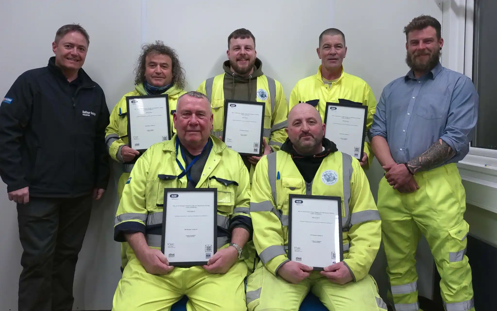 Five experienced cable installers from Balfour Beatty Kilpatrick recently completed the EAL Level 3 Certificate in Power Supply and Distribution Cabling, and gained a formal recognition of their skills.